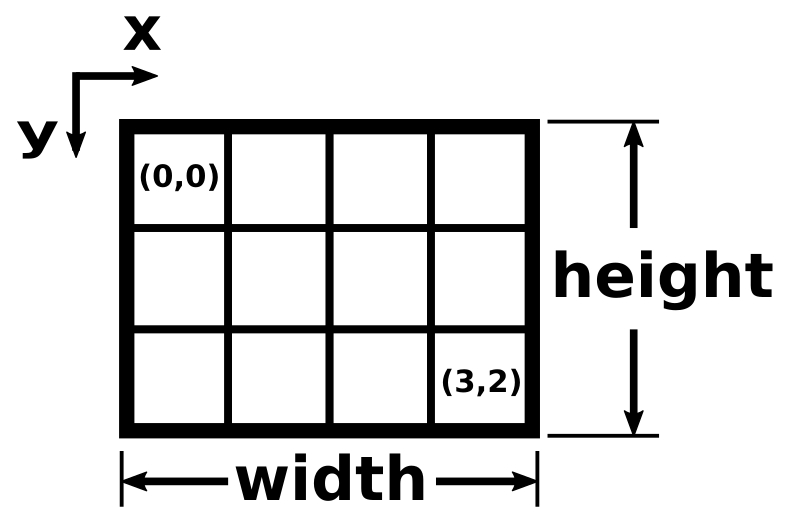 The screen is organised with the top left hand side being the origin point of (0,0).